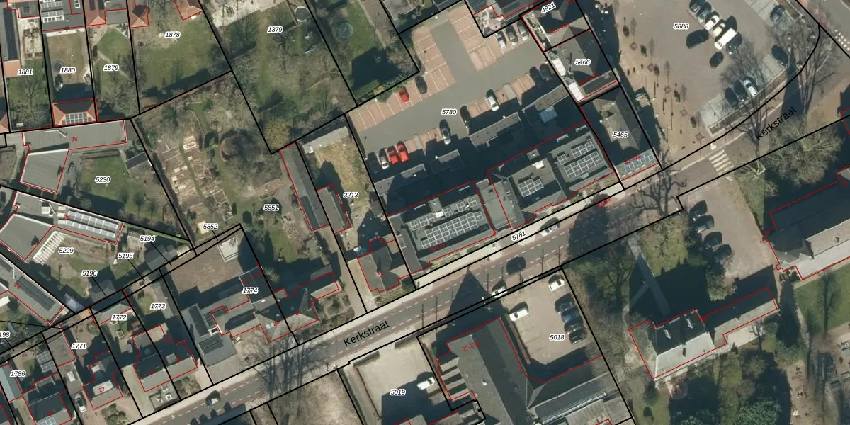 Het perceel waarop Kerkstraat 38-a staat heeft een oppervlakte van 2390 m². Dit is een zeer groot perceel. De perceeloppervlakte wordt geregistreerd door het Kadaster. Gedetailleerde informatie over de maten van dit perceel kunt u vinden in het rapport Kadastrale kaart met maatvoering van Kerkstraat 38-a.