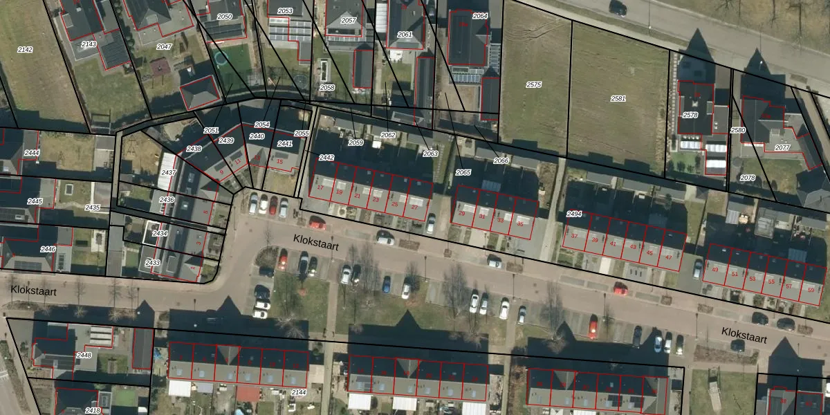 Het perceel waarop Klokstaart 27 staat heeft een oppervlakte van 3375 m². Dit is een zeer groot perceel. De perceeloppervlakte wordt geregistreerd door het Kadaster. Gedetailleerde informatie over de maten van dit perceel kunt u vinden in het rapport Kadastrale kaart met maatvoering van Klokstaart 27.