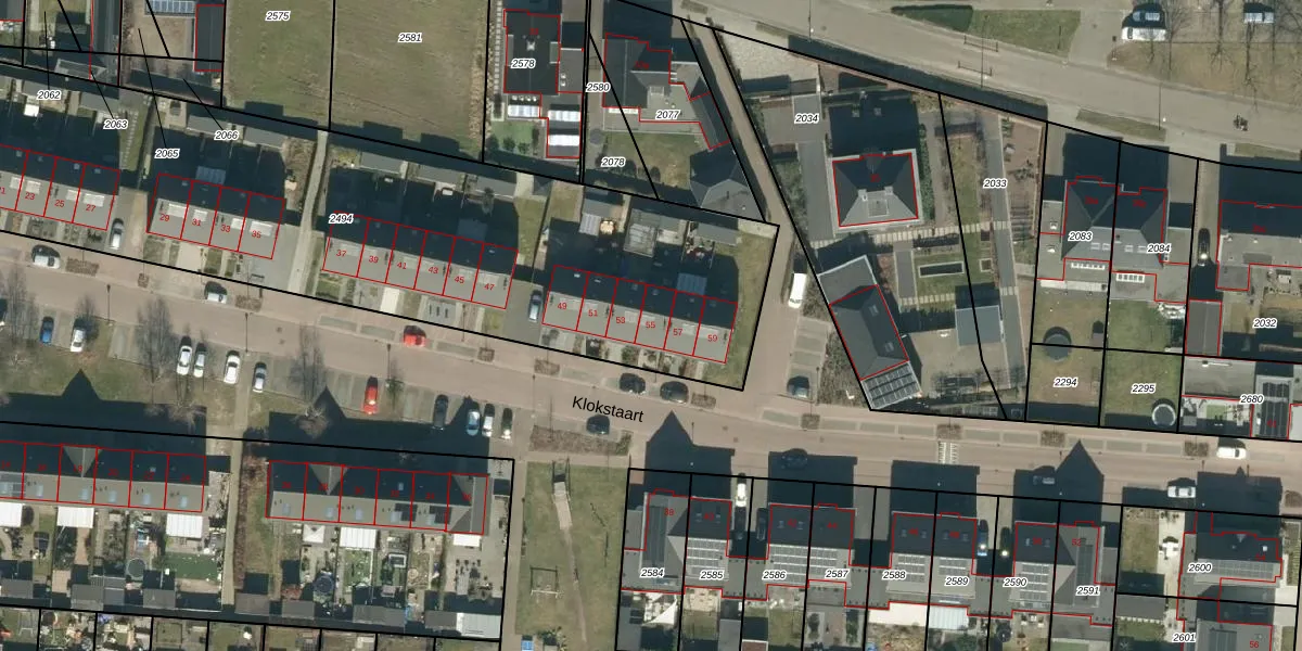 Het perceel waarop Klokstaart 55 staat heeft een oppervlakte van 3375 m². Dit is een zeer groot perceel. De perceeloppervlakte wordt geregistreerd door het Kadaster. Gedetailleerde informatie over de maten van dit perceel kunt u vinden in het rapport Kadastrale kaart met maatvoering van Klokstaart 55.