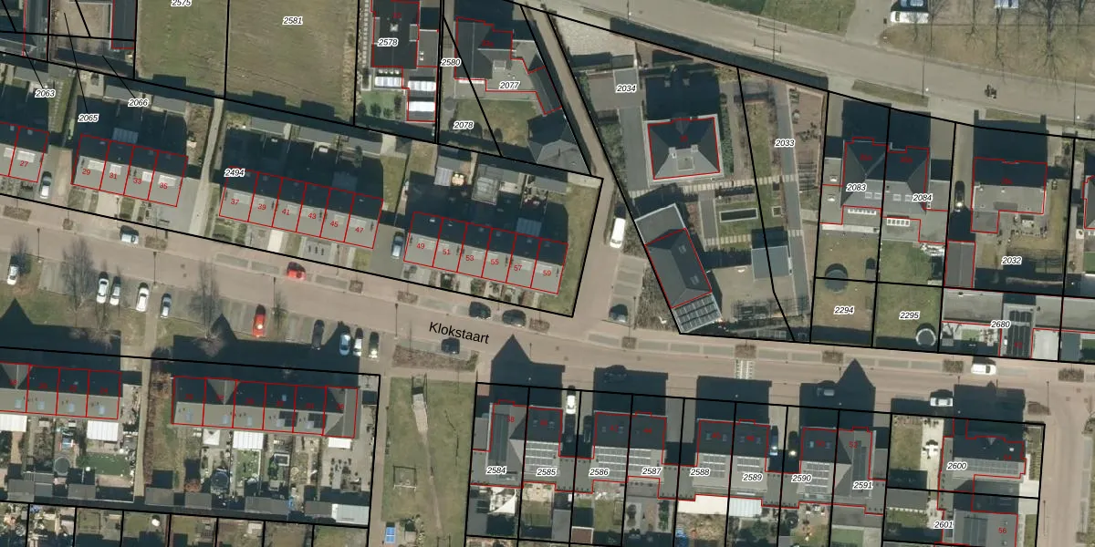 Het perceel waarop Klokstaart 59 staat heeft een oppervlakte van 3375 m². Dit is een zeer groot perceel. De perceeloppervlakte wordt geregistreerd door het Kadaster. Gedetailleerde informatie over de maten van dit perceel kunt u vinden in het rapport Kadastrale kaart met maatvoering van Klokstaart 59.