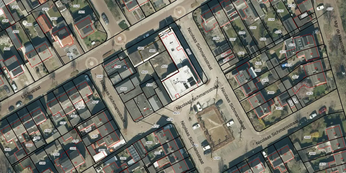 Lindestraat 63 is gelegen op kadastraal perceel ESL00F5864. Deze kadastrale aanduiding is uniek en wordt gebruikt door het Kadaster om eigendomsrechten en andere zakelijke rechten vast te leggen. Het perceel maakt onderdeel uit van de kadastrale gemeente Eersel.