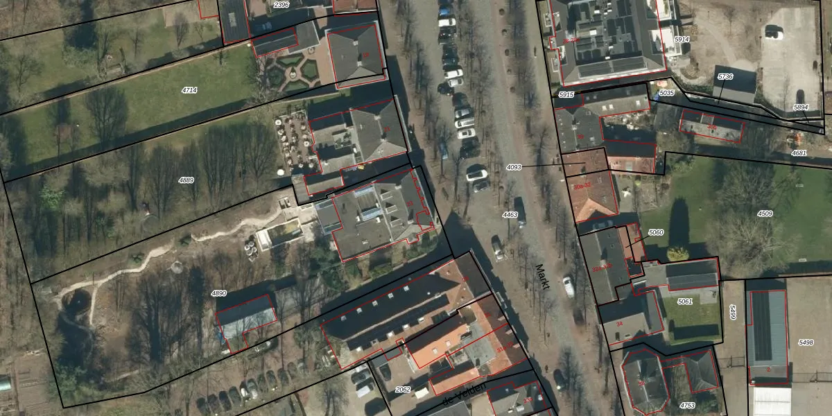 Gebruik de zoekbalk of klik op een perceel voor informatie over de adressen binnen dit perceel.
