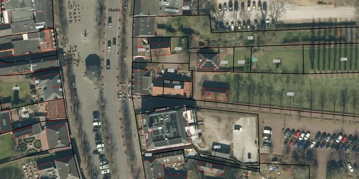 Het perceel waarop Markt 26-b staat heeft een oppervlakte van 157 m². Dit is een middelgroot perceel. De perceeloppervlakte wordt geregistreerd door het Kadaster. Gedetailleerde informatie over de maten van dit perceel kunt u vinden in het rapport Kadastrale kaart met maatvoering van Markt 26-b.