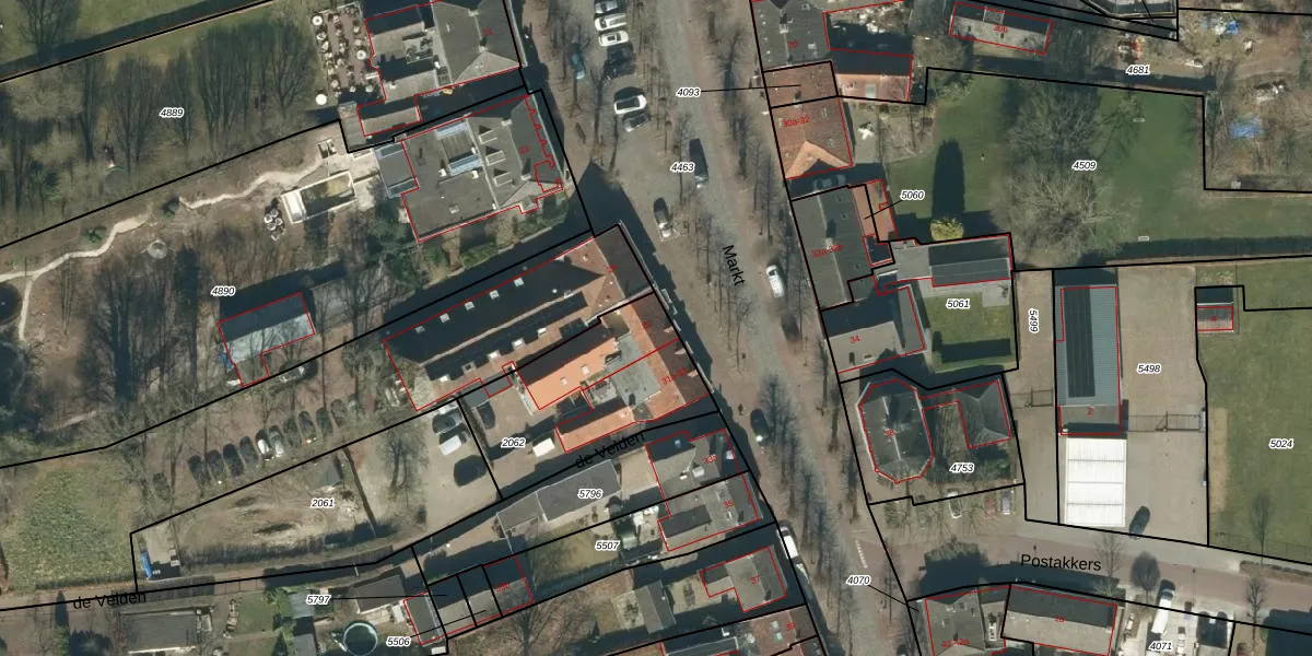 Het perceel waarop Markt 31 staat heeft een oppervlakte van 610 m². Dit is een groot perceel. De perceeloppervlakte wordt geregistreerd door het Kadaster. Gedetailleerde informatie over de maten van dit perceel kunt u vinden in het rapport Kadastrale kaart met maatvoering van Markt 31.