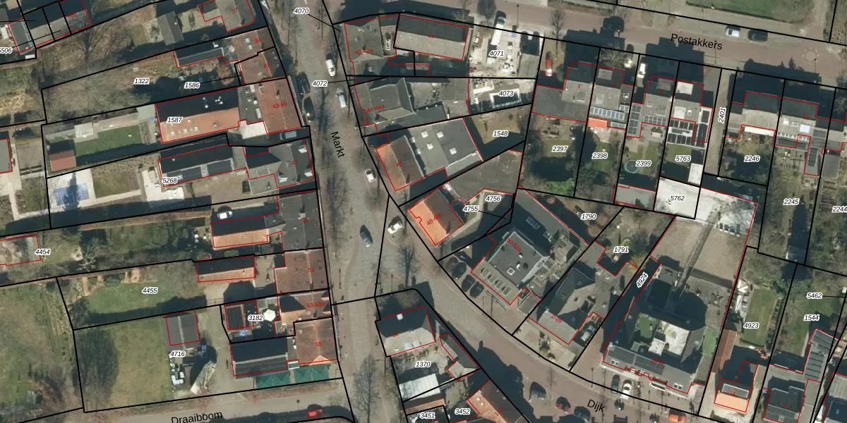 Het adres ligt op het perceel ESL00-F-4756, dat zich in de kadastrale gemeente Eersel bevindt. De gemiddelde perceelgrootte in Eersel is 4857,34 m². Dit perceel is kleiner: de perceeloppervlakte bedraagt 413 m². De grootste perceeloppervlakte in de kadastrale gemeente is 1,50 km². De kleinste oppervlakte bedraagt 0 m². Er zijn 3 adressen aanwezig op het perceel. In de Basisregistratie Kadaster (BRK) werden de grenzen van het perceel geregistreerd op 22-09-2005.
