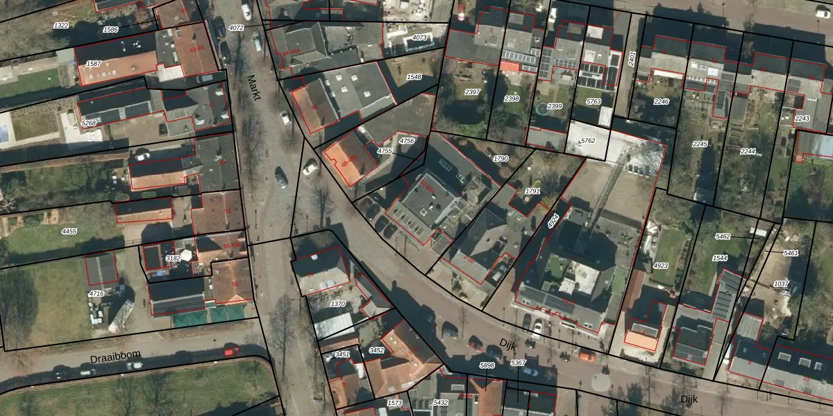 Het perceel waarop Markt 52 staat heeft een oppervlakte van 707 m². Dit is een groot perceel. De perceeloppervlakte wordt geregistreerd door het Kadaster. Gedetailleerde informatie over de maten van dit perceel kunt u vinden in het rapport Kadastrale kaart met maatvoering van Markt 52.