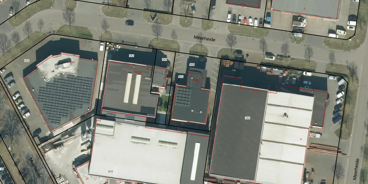 Het perceel waarop Meerheide 56 staat heeft een oppervlakte van 957 m². Dit is een groot perceel. De perceeloppervlakte wordt geregistreerd door het Kadaster. Gedetailleerde informatie over de maten van dit perceel kunt u vinden in het rapport Kadastrale kaart met maatvoering van Meerheide 56.