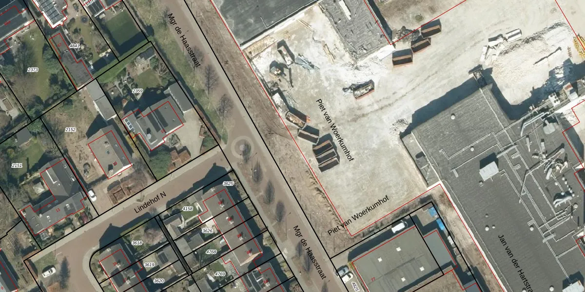 Het perceel waarop Mgr de Haasstraat 87 staat heeft een oppervlakte van 4,5 ha. Dit is een zeer groot perceel. De perceeloppervlakte wordt geregistreerd door het Kadaster. Gedetailleerde informatie over de maten van dit perceel kunt u vinden in het rapport Kadastrale kaart met maatvoering van Mgr de Haasstraat 87.