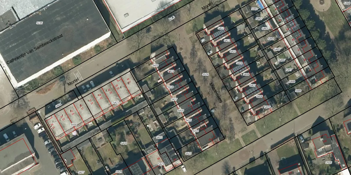 Middenweg 5 is gelegen op kadastraal perceel ESL00F5418. Deze kadastrale aanduiding is uniek en wordt gebruikt door het Kadaster om eigendomsrechten en andere zakelijke rechten vast te leggen. Het perceel maakt onderdeel uit van de kadastrale gemeente Eersel.