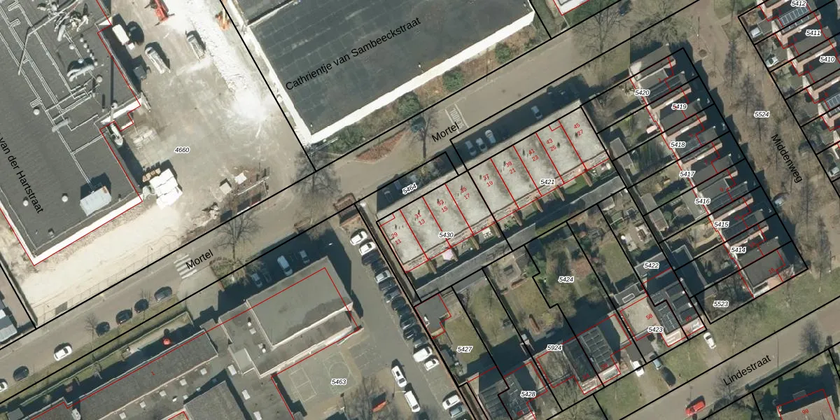 Het perceel waarop Mortel 13 staat heeft een oppervlakte van 549 m². Dit is een groot perceel. De perceeloppervlakte wordt geregistreerd door het Kadaster. Gedetailleerde informatie over de maten van dit perceel kunt u vinden in het rapport Kadastrale kaart met maatvoering van Mortel 13.