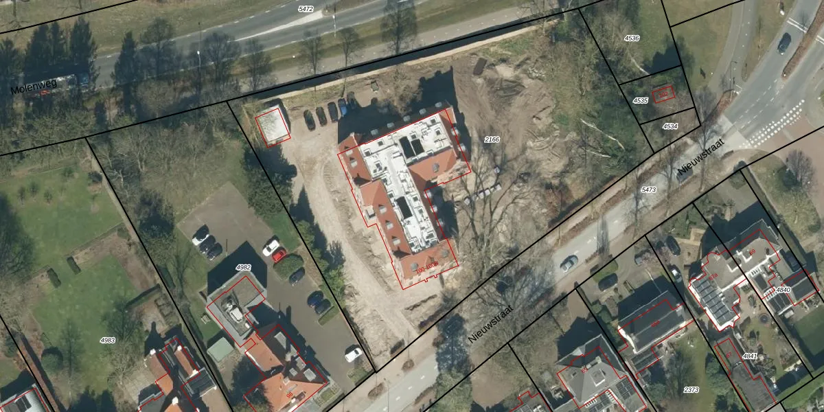 Het perceel waarop Nieuwstraat 100-A-13 staat heeft een oppervlakte van 4800 m². Dit is een zeer groot perceel. De perceeloppervlakte wordt geregistreerd door het Kadaster. Gedetailleerde informatie over de maten van dit perceel kunt u vinden in het rapport Kadastrale kaart met maatvoering van Nieuwstraat 100-A-13.
