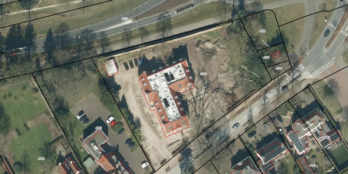 Het perceel waarop Nieuwstraat 100-A-19 staat heeft een oppervlakte van 4800 m². Dit is een zeer groot perceel. De perceeloppervlakte wordt geregistreerd door het Kadaster. Gedetailleerde informatie over de maten van dit perceel kunt u vinden in het rapport Kadastrale kaart met maatvoering van Nieuwstraat 100-A-19.