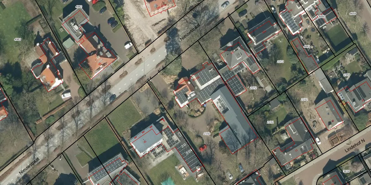 Het perceel waarop Nieuwstraat 63 staat heeft een oppervlakte van 2565 m². Dit is een zeer groot perceel. De perceeloppervlakte wordt geregistreerd door het Kadaster. Gedetailleerde informatie over de maten van dit perceel kunt u vinden in het rapport Kadastrale kaart met maatvoering van Nieuwstraat 63.