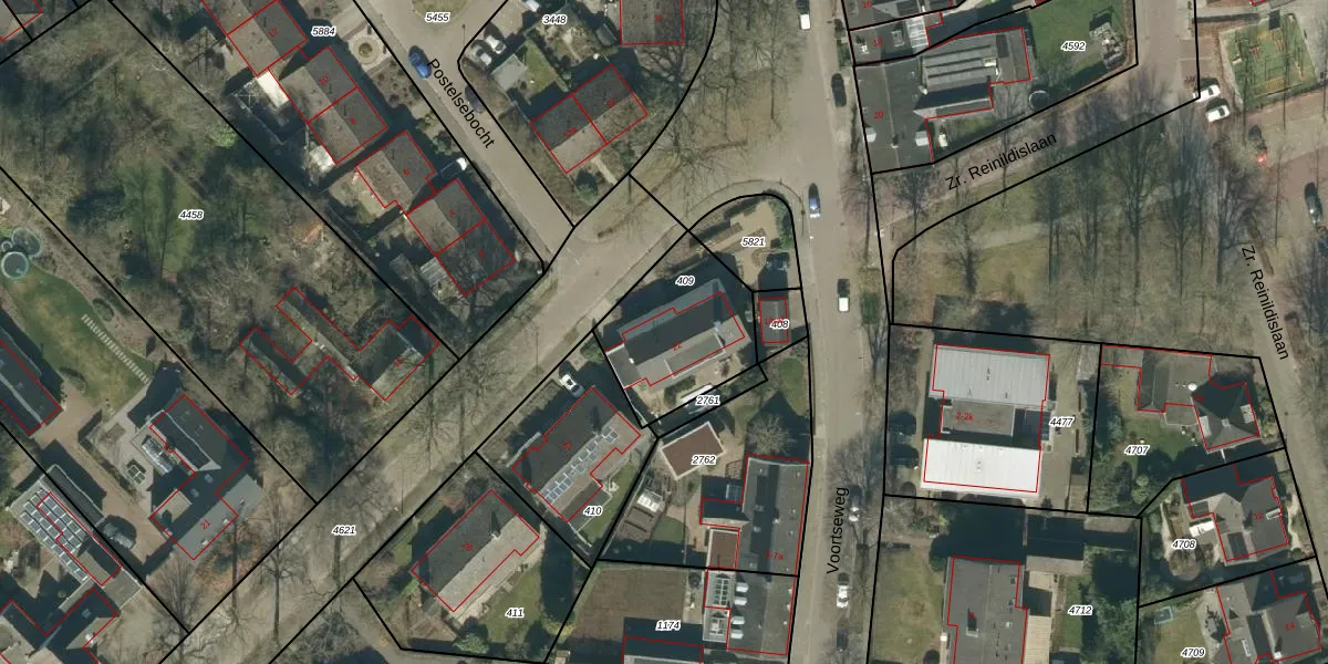 Het perceel waarop Oude Postelseweg 22 staat heeft een oppervlakte van 440 m². Dit is een groot perceel. De perceeloppervlakte wordt geregistreerd door het Kadaster. Gedetailleerde informatie over de maten van dit perceel kunt u vinden in het rapport Kadastrale kaart met maatvoering van Oude Postelseweg 22.