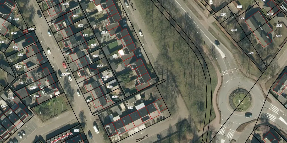 Het perceel waarop Oudland 17 staat heeft een oppervlakte van 2473 m². Dit is een zeer groot perceel. De perceeloppervlakte wordt geregistreerd door het Kadaster. Gedetailleerde informatie over de maten van dit perceel kunt u vinden in het rapport Kadastrale kaart met maatvoering van Oudland 17.