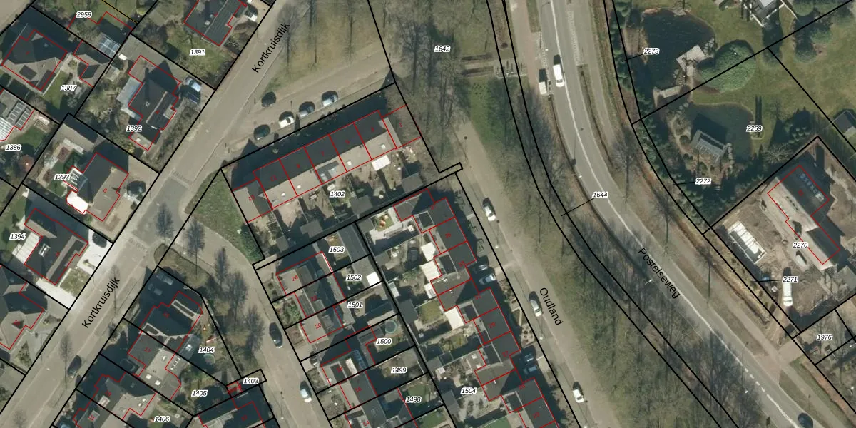 Het perceel waarop Oudland 37 staat heeft een oppervlakte van 2473 m². Dit is een zeer groot perceel. De perceeloppervlakte wordt geregistreerd door het Kadaster. Gedetailleerde informatie over de maten van dit perceel kunt u vinden in het rapport Kadastrale kaart met maatvoering van Oudland 37.