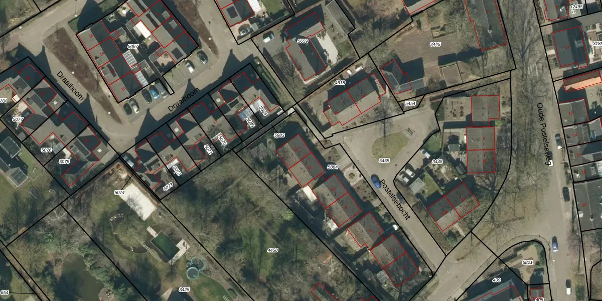 Postelsebocht 14 is gelegen op kadastraal perceel ESL00F5884. Deze kadastrale aanduiding is uniek en wordt gebruikt door het Kadaster om eigendomsrechten en andere zakelijke rechten vast te leggen. Het perceel maakt onderdeel uit van de kadastrale gemeente Eersel.