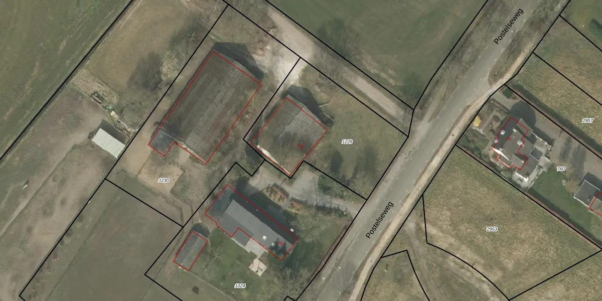 Het perceel waarop Postelseweg 155 staat heeft een oppervlakte van 1340 m². Dit is een zeer groot perceel. De perceeloppervlakte wordt geregistreerd door het Kadaster. Gedetailleerde informatie over de maten van dit perceel kunt u vinden in het rapport Kadastrale kaart met maatvoering van Postelseweg 155.