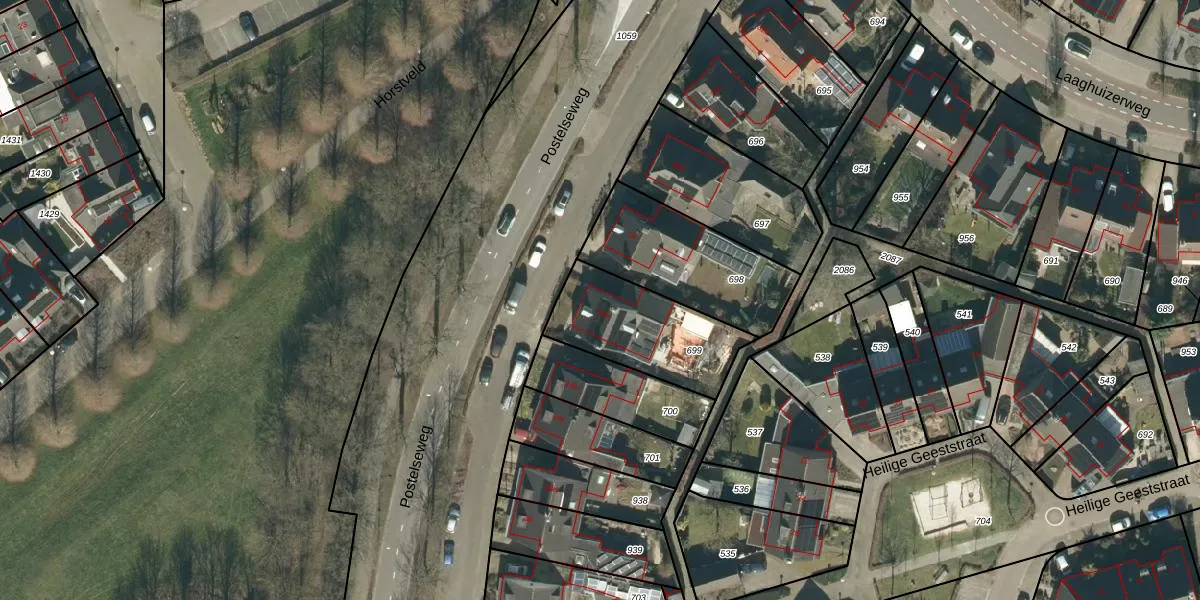 Gebruik de zoekbalk of klik op een perceel voor informatie over de adressen binnen dit perceel.