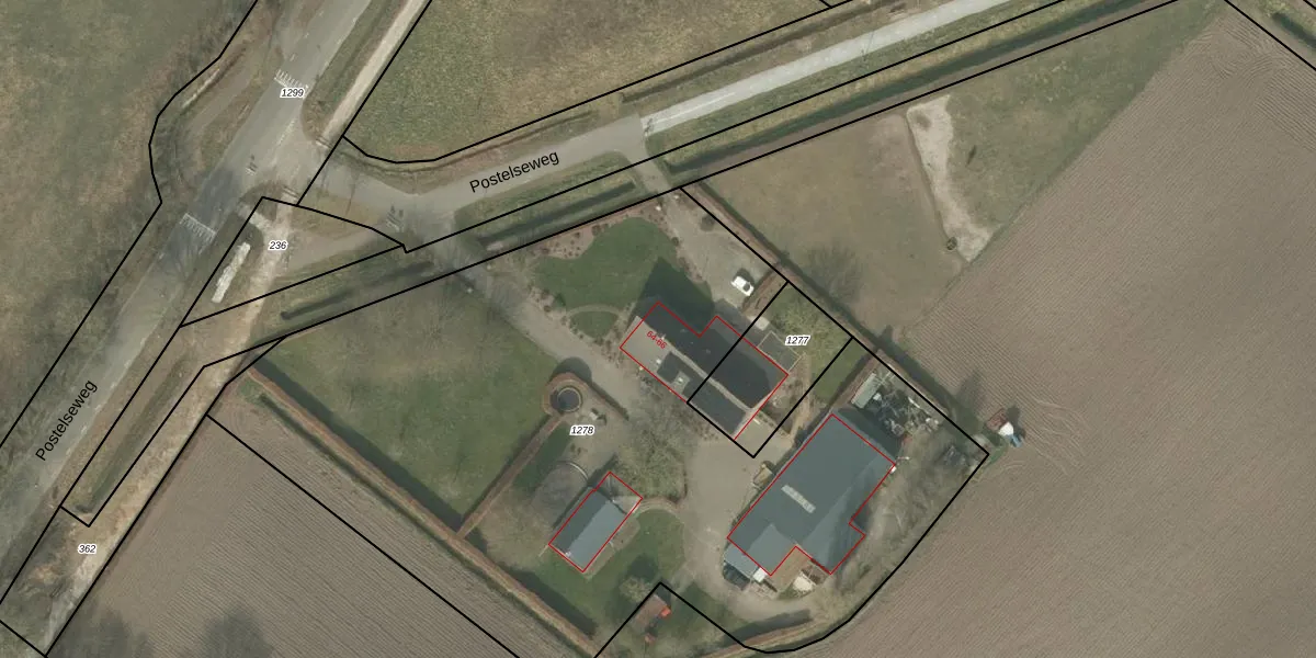 Postelseweg 64 is gelegen op kadastraal perceel ESL00M1278. Deze kadastrale aanduiding is uniek en wordt gebruikt door het Kadaster om eigendomsrechten en andere zakelijke rechten vast te leggen. Het perceel maakt onderdeel uit van de kadastrale gemeente Eersel.