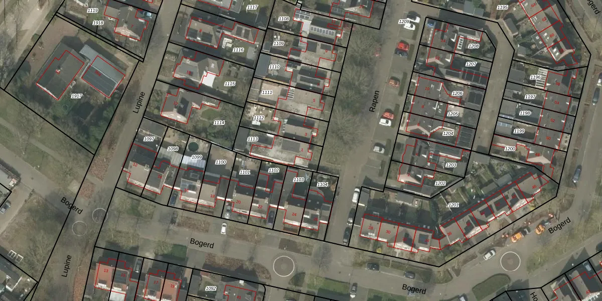 Het perceel waarop Rapen 1 staat heeft een oppervlakte van 261 m². Dit is een middelgroot perceel. De perceeloppervlakte wordt geregistreerd door het Kadaster. Gedetailleerde informatie over de maten van dit perceel kunt u vinden in het rapport Kadastrale kaart met maatvoering van Rapen 1.