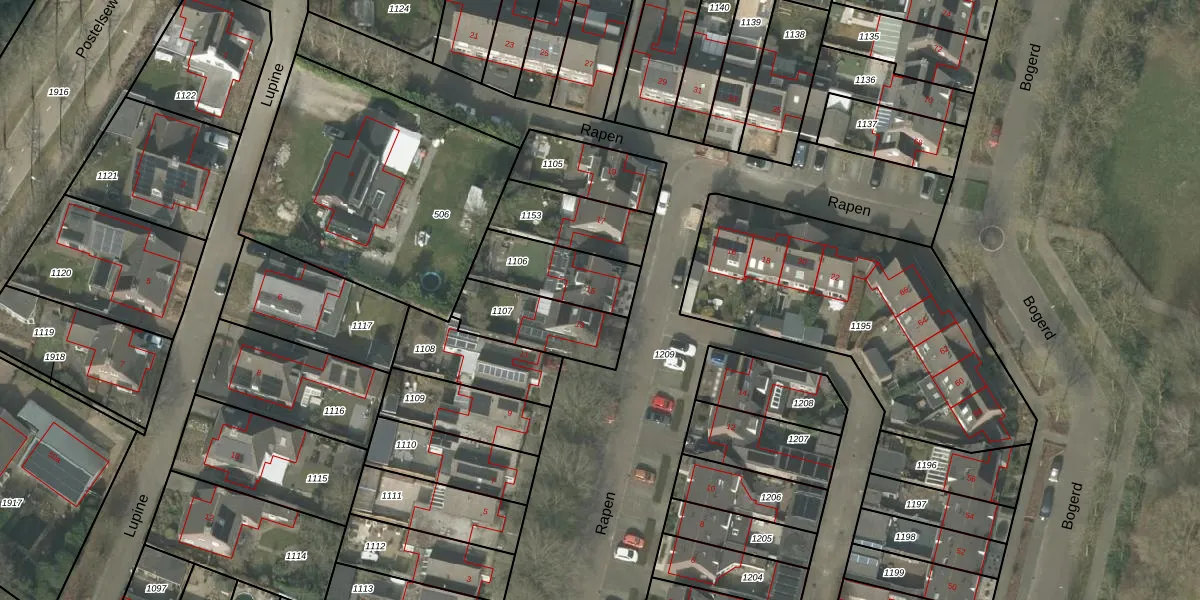 Het perceel waarop Rapen 15 staat heeft een oppervlakte van 240 m². Dit is een middelgroot perceel. De perceeloppervlakte wordt geregistreerd door het Kadaster. Gedetailleerde informatie over de maten van dit perceel kunt u vinden in het rapport Kadastrale kaart met maatvoering van Rapen 15.