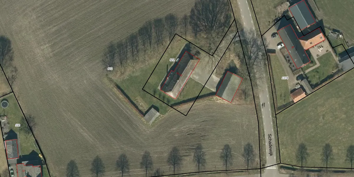 Het perceel waarop Schadewijk 16 staat heeft een oppervlakte van 1168 m². Dit is een zeer groot perceel. De perceeloppervlakte wordt geregistreerd door het Kadaster. Gedetailleerde informatie over de maten van dit perceel kunt u vinden in het rapport Kadastrale kaart met maatvoering van Schadewijk 16.