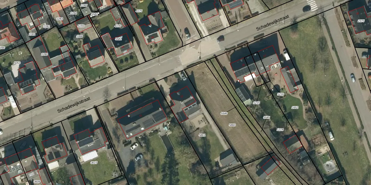 Schadewijkstraat 13 is gelegen op kadastraal perceel ESL00F5861. Deze kadastrale aanduiding is uniek en wordt gebruikt door het Kadaster om eigendomsrechten en andere zakelijke rechten vast te leggen. Het perceel maakt onderdeel uit van de kadastrale gemeente Eersel.
