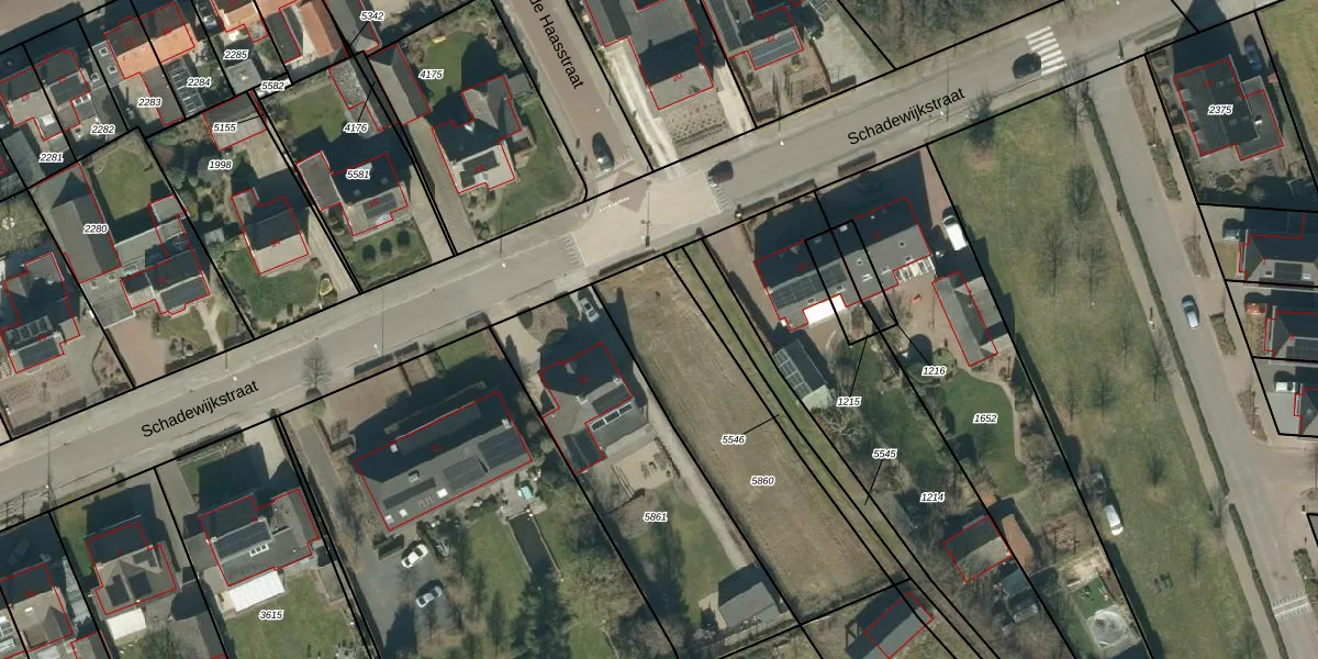 Gebruik de zoekbalk of klik op een perceel voor informatie over de adressen binnen dit perceel.