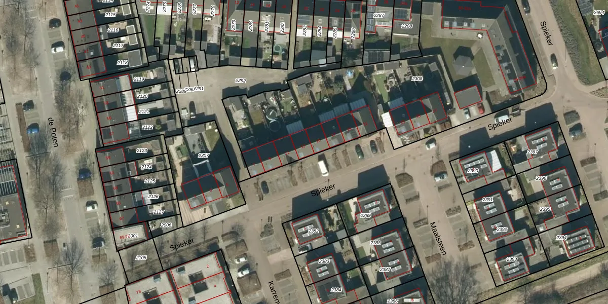 Het perceel waarop Spieker 13 staat heeft een oppervlakte van 3150 m². Dit is een zeer groot perceel. De perceeloppervlakte wordt geregistreerd door het Kadaster. Gedetailleerde informatie over de maten van dit perceel kunt u vinden in het rapport Kadastrale kaart met maatvoering van Spieker 13.