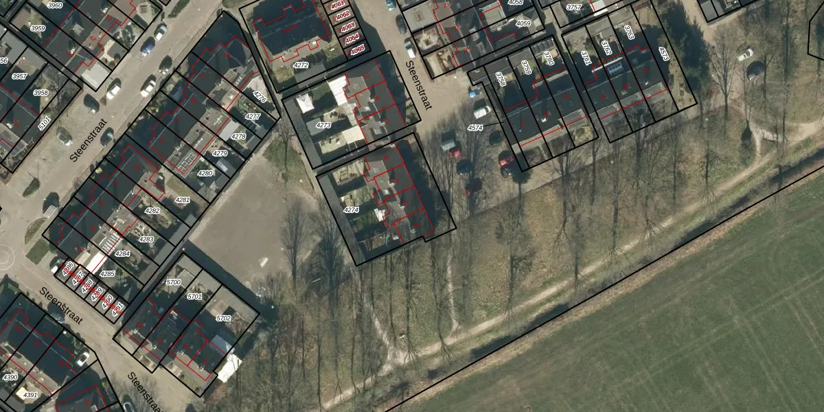 Het perceel waarop Steenstraat 41 staat heeft een oppervlakte van 626 m². Dit is een groot perceel. De perceeloppervlakte wordt geregistreerd door het Kadaster. Gedetailleerde informatie over de maten van dit perceel kunt u vinden in het rapport Kadastrale kaart met maatvoering van Steenstraat 41.