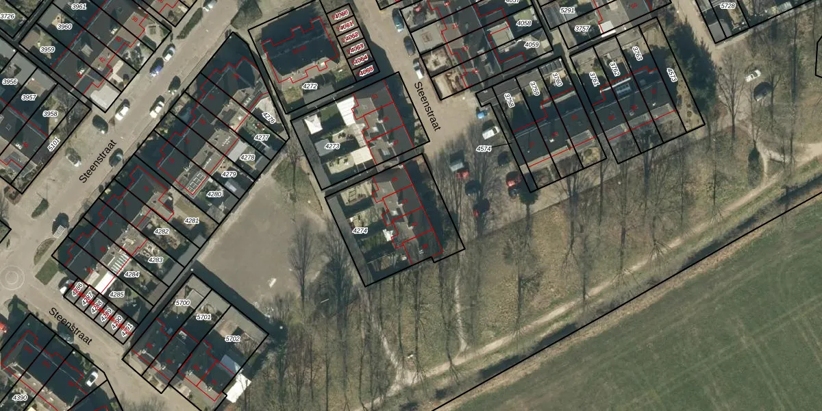 Het perceel waarop Steenstraat 43 staat heeft een oppervlakte van 626 m². Dit is een groot perceel. De perceeloppervlakte wordt geregistreerd door het Kadaster. Gedetailleerde informatie over de maten van dit perceel kunt u vinden in het rapport Kadastrale kaart met maatvoering van Steenstraat 43.