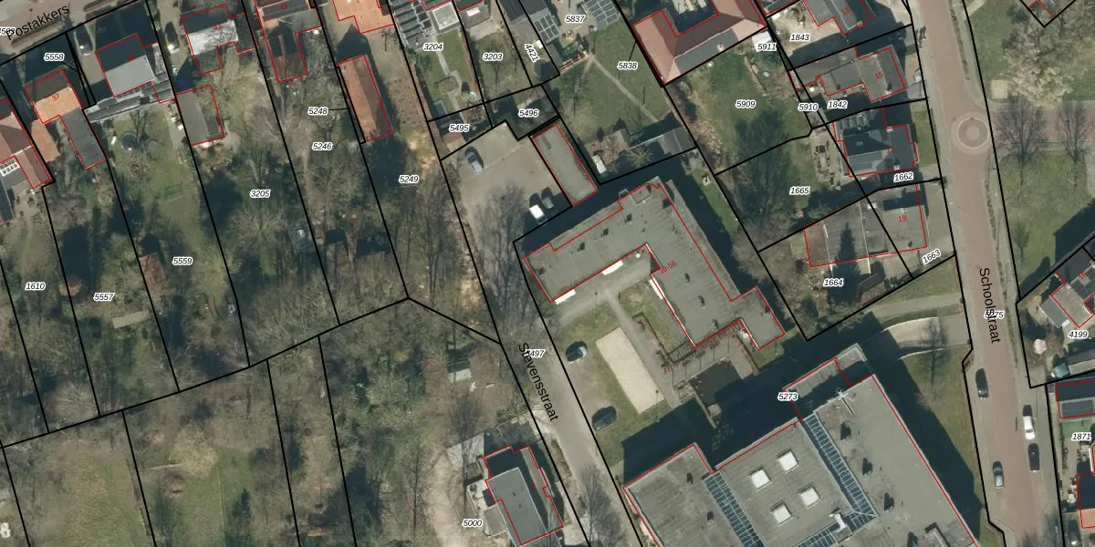 Het perceel waarop Stevensstraat 39 staat heeft een oppervlakte van 5342 m². Dit is een zeer groot perceel. De perceeloppervlakte wordt geregistreerd door het Kadaster. Gedetailleerde informatie over de maten van dit perceel kunt u vinden in het rapport Kadastrale kaart met maatvoering van Stevensstraat 39.