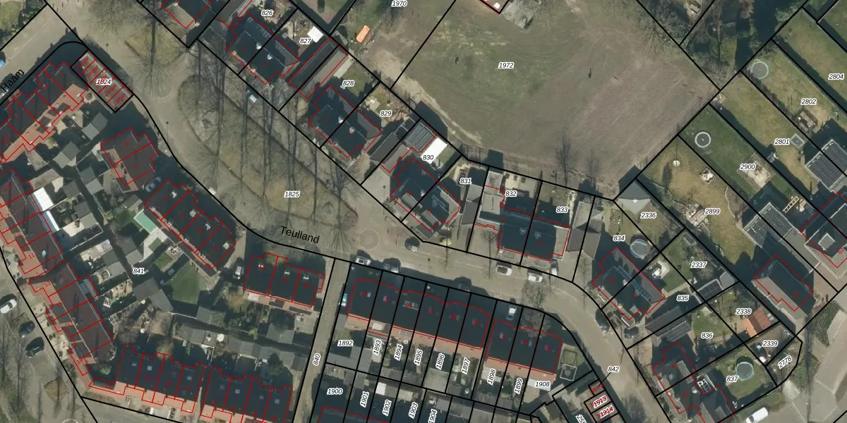 Teulland 13 is gelegen op kadastraal perceel ESL00M831. Deze kadastrale aanduiding is uniek en wordt gebruikt door het Kadaster om eigendomsrechten en andere zakelijke rechten vast te leggen. Het perceel maakt onderdeel uit van de kadastrale gemeente Eersel.