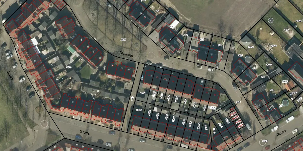 Het perceel waarop Teulland 20 staat heeft een oppervlakte van 186 m². Dit is een middelgroot perceel. De perceeloppervlakte wordt geregistreerd door het Kadaster. Gedetailleerde informatie over de maten van dit perceel kunt u vinden in het rapport Kadastrale kaart met maatvoering van Teulland 20.