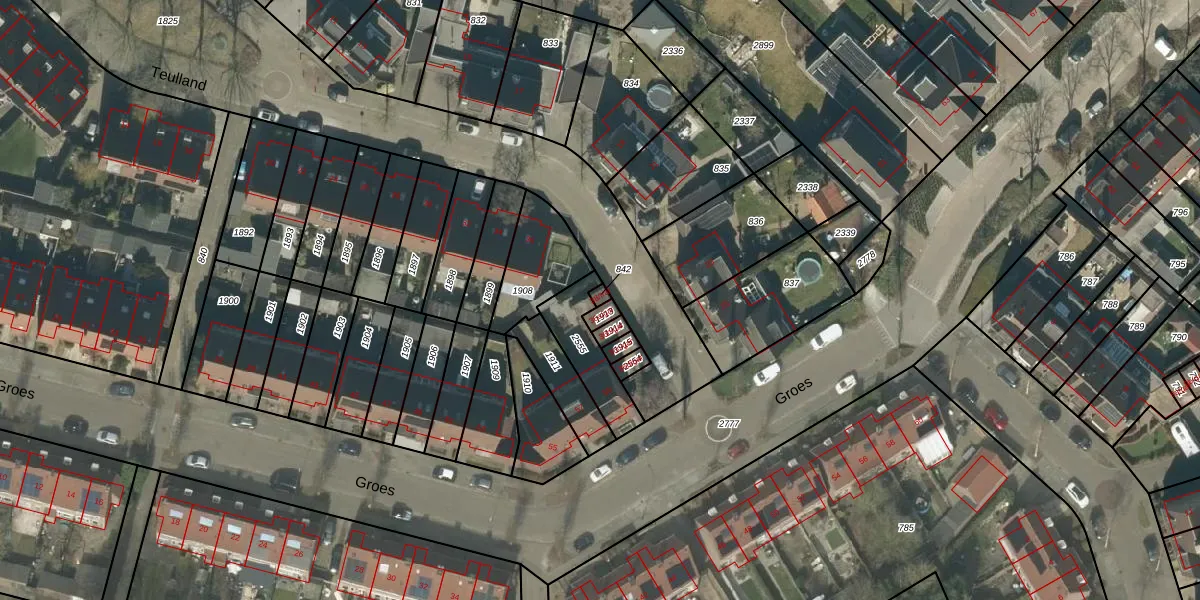 Gebruik de zoekbalk of klik op een perceel voor informatie over de adressen binnen dit perceel.