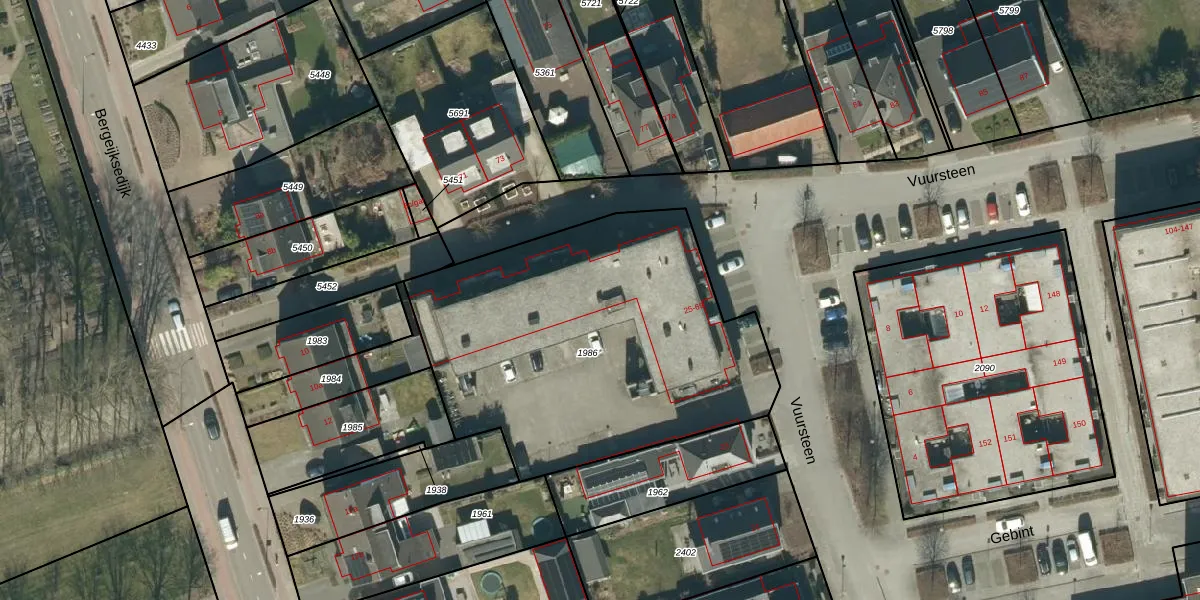 Het perceel waarop Vuursteen 63 staat heeft een oppervlakte van 1868 m². Dit is een zeer groot perceel. De perceeloppervlakte wordt geregistreerd door het Kadaster. Gedetailleerde informatie over de maten van dit perceel kunt u vinden in het rapport Kadastrale kaart met maatvoering van Vuursteen 63.