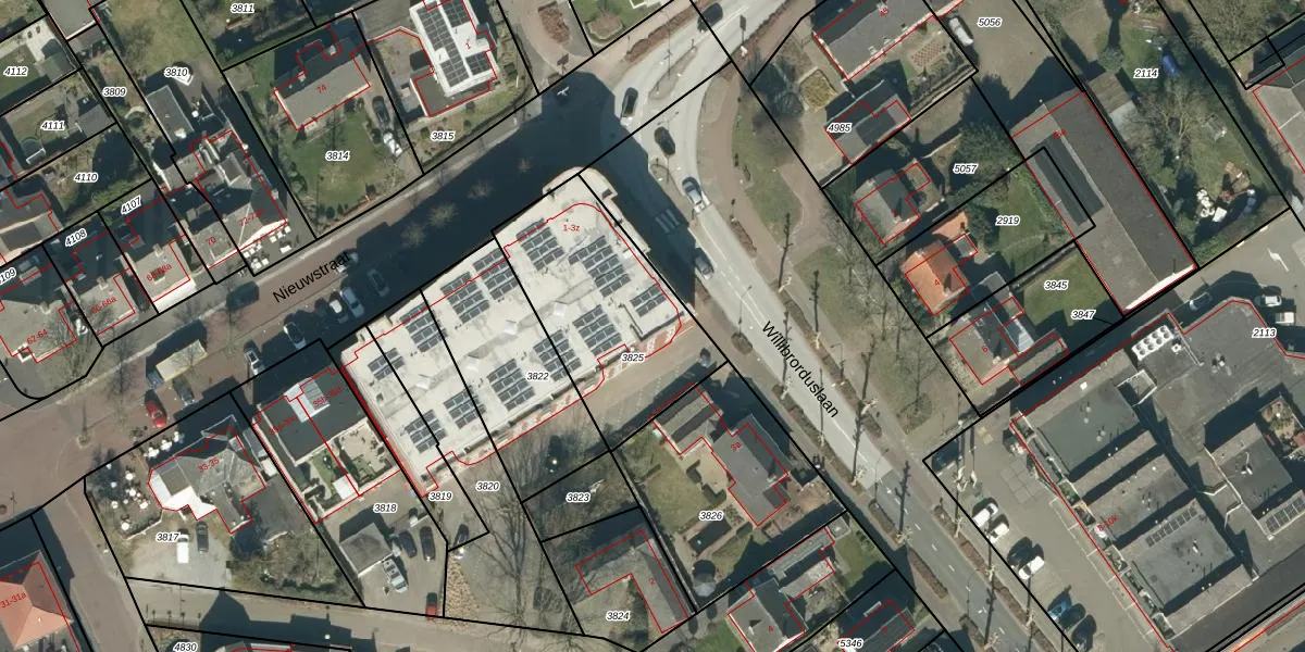 Het perceel waarop Willibrorduslaan 1-z staat heeft een oppervlakte van 723 m². Dit is een groot perceel. De perceeloppervlakte wordt geregistreerd door het Kadaster. Gedetailleerde informatie over de maten van dit perceel kunt u vinden in het rapport Kadastrale kaart met maatvoering van Willibrorduslaan 1-z.
