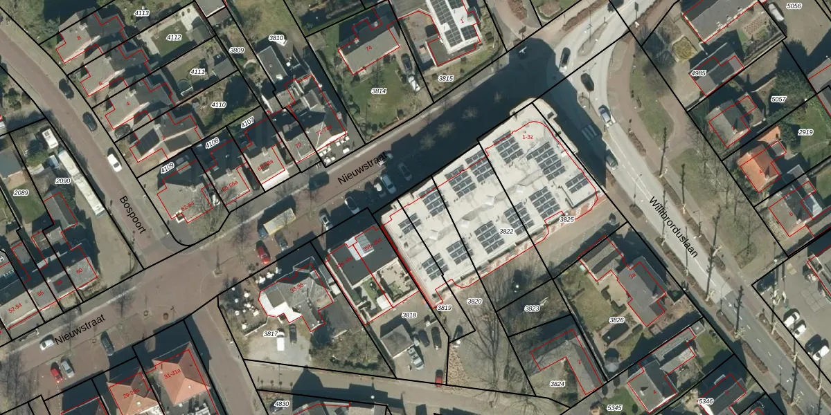 Het perceel waarop Willibrorduslaan 1-e staat heeft een oppervlakte van 560 m². Dit is een groot perceel. De perceeloppervlakte wordt geregistreerd door het Kadaster. Gedetailleerde informatie over de maten van dit perceel kunt u vinden in het rapport Kadastrale kaart met maatvoering van Willibrorduslaan 1-e.