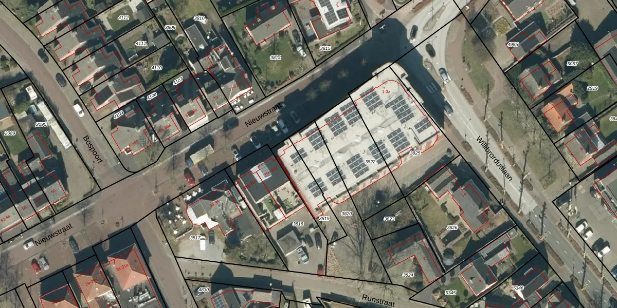 Het perceel waarop Willibrorduslaan 1-n staat heeft een oppervlakte van 560 m². Dit is een groot perceel. De perceeloppervlakte wordt geregistreerd door het Kadaster. Gedetailleerde informatie over de maten van dit perceel kunt u vinden in het rapport Kadastrale kaart met maatvoering van Willibrorduslaan 1-n.