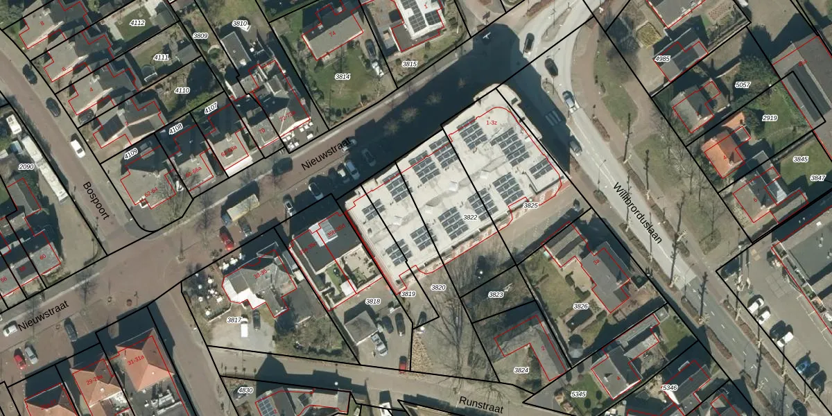 Het perceel waarop Willibrorduslaan 1-u staat heeft een oppervlakte van 560 m². Dit is een groot perceel. De perceeloppervlakte wordt geregistreerd door het Kadaster. Gedetailleerde informatie over de maten van dit perceel kunt u vinden in het rapport Kadastrale kaart met maatvoering van Willibrorduslaan 1-u.