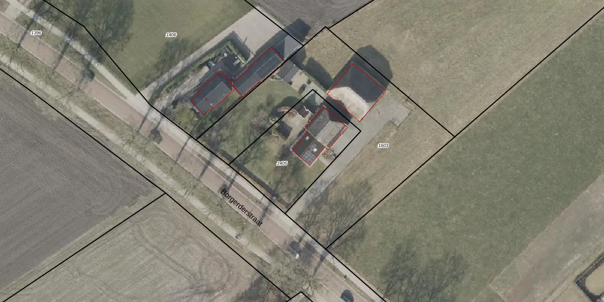 Borgerderstraat 4 is gelegen op kadastraal perceel BGR01M1405. Deze kadastrale aanduiding is uniek en wordt gebruikt door het Kadaster om eigendomsrechten en andere zakelijke rechten vast te leggen. Het perceel maakt onderdeel uit van de kadastrale gemeente Borger.