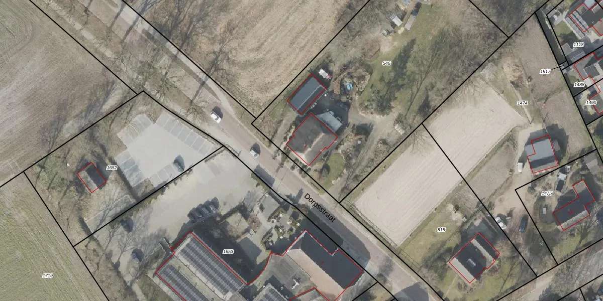 Het perceel waarop Dorpsstraat 1 staat heeft een oppervlakte van 3230 m². Dit is een zeer groot perceel. De perceeloppervlakte wordt geregistreerd door het Kadaster. Gedetailleerde informatie over de maten van dit perceel kunt u vinden in het rapport Kadastrale kaart met maatvoering van Dorpsstraat 1.