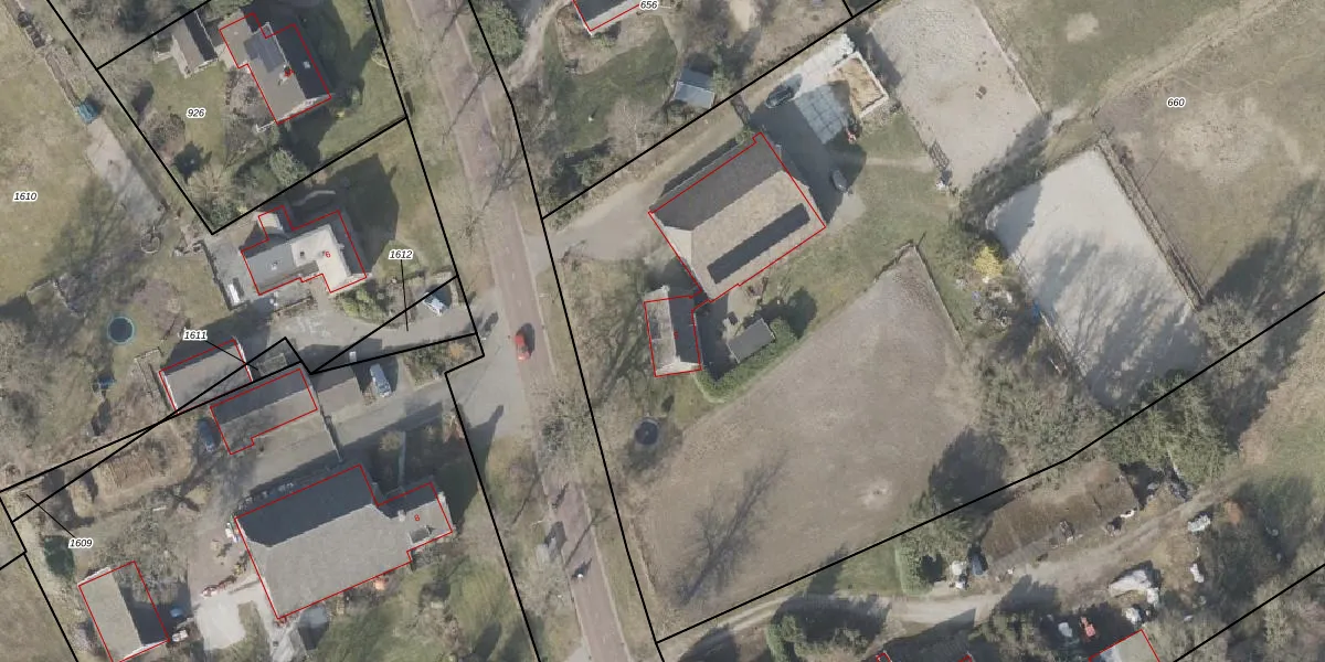 Het perceel waarop Dorpsstraat 5 staat heeft een oppervlakte van 1,3 ha. Dit is een zeer groot perceel. De perceeloppervlakte wordt geregistreerd door het Kadaster. Gedetailleerde informatie over de maten van dit perceel kunt u vinden in het rapport Kadastrale kaart met maatvoering van Dorpsstraat 5.