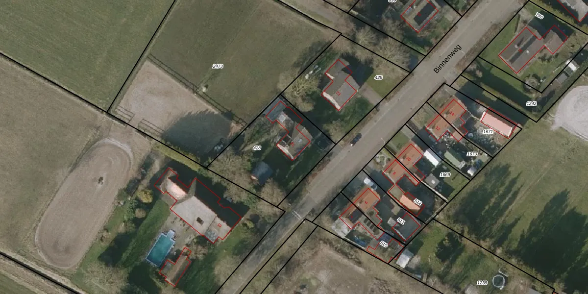 Het perceel waarop Binnenweg 21 staat heeft een oppervlakte van 860 m². Dit is een groot perceel. De perceeloppervlakte wordt geregistreerd door het Kadaster. Gedetailleerde informatie over de maten van dit perceel kunt u vinden in het rapport Kadastrale kaart met maatvoering van Binnenweg 21.