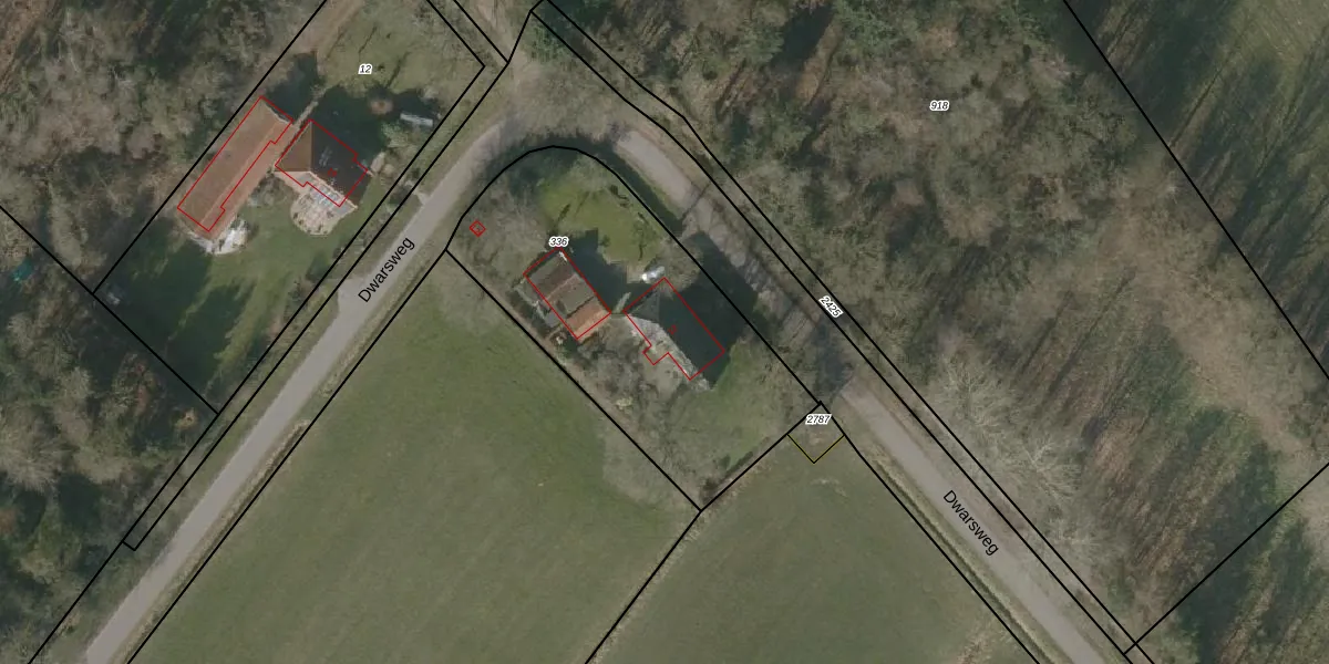 Dwarsweg 12 is gelegen op kadastraal perceel SWK01G336. Deze kadastrale aanduiding is uniek en wordt gebruikt door het Kadaster om eigendomsrechten en andere zakelijke rechten vast te leggen. Het perceel maakt onderdeel uit van de kadastrale gemeente Steenwijk.