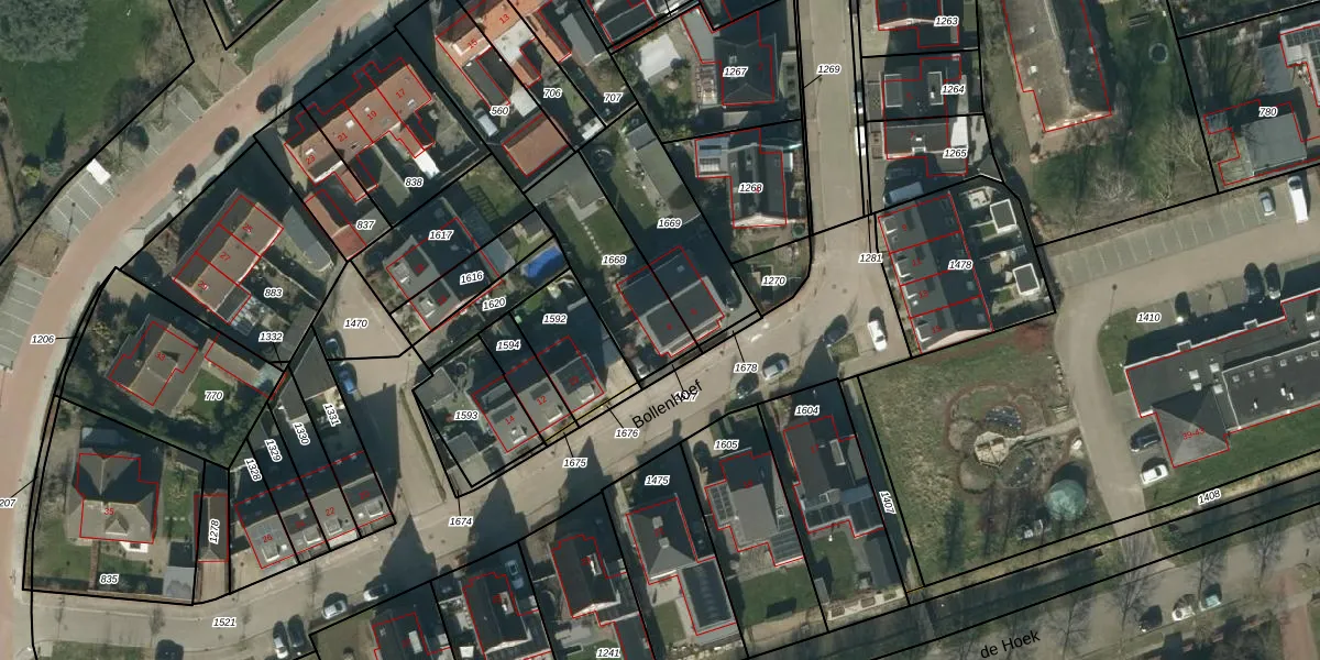 Het perceel waarop Bollenhoef 8 staat heeft een oppervlakte van 341 m². Dit is een groot perceel. De perceeloppervlakte wordt geregistreerd door het Kadaster. Gedetailleerde informatie over de maten van dit perceel kunt u vinden in het rapport Kadastrale kaart met maatvoering van Bollenhoef 8.