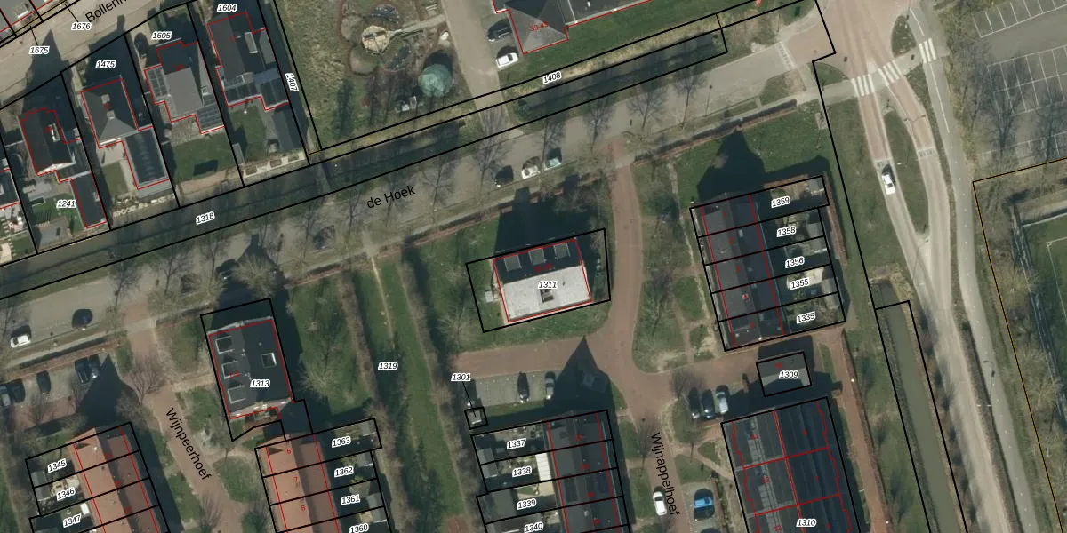 Het perceel waarop de Hoek 22 staat heeft een oppervlakte van 340 m². Dit is een groot perceel. De perceeloppervlakte wordt geregistreerd door het Kadaster. Gedetailleerde informatie over de maten van dit perceel kunt u vinden in het rapport Kadastrale kaart met maatvoering van de Hoek 22.