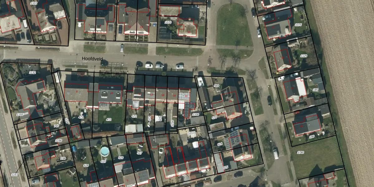Het perceel waarop Hoofdveld 20 staat heeft een oppervlakte van 325 m². Dit is een groot perceel. De perceeloppervlakte wordt geregistreerd door het Kadaster. Gedetailleerde informatie over de maten van dit perceel kunt u vinden in het rapport Kadastrale kaart met maatvoering van Hoofdveld 20.