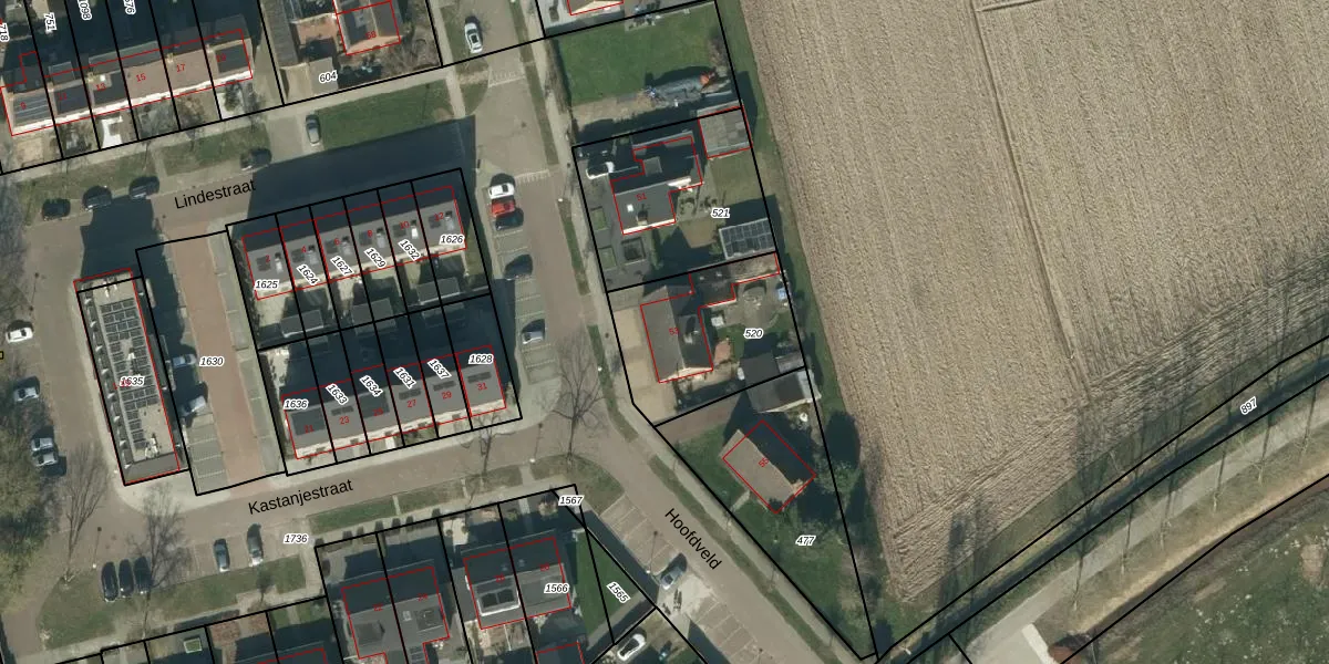 Het perceel waarop Hoofdveld 53 staat heeft een oppervlakte van 523 m². Dit is een groot perceel. De perceeloppervlakte wordt geregistreerd door het Kadaster. Gedetailleerde informatie over de maten van dit perceel kunt u vinden in het rapport Kadastrale kaart met maatvoering van Hoofdveld 53.